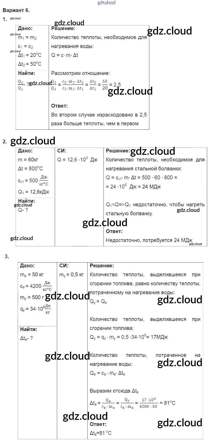 СР №3. Количество теплоты. Энергия топлива. Варианты Ответы к самостоятельным работам по Физике 8 класс Дидактические материалы Марон Вертикаль Дрофа