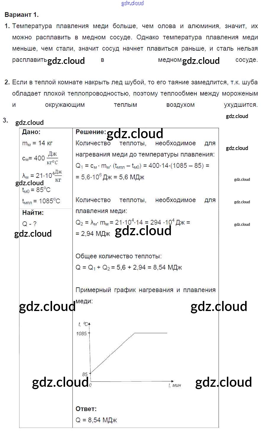 Ответ на задание 1 Дидактические материалы Физика за 8 (восьмой) класс Марон Вертикаль 2016