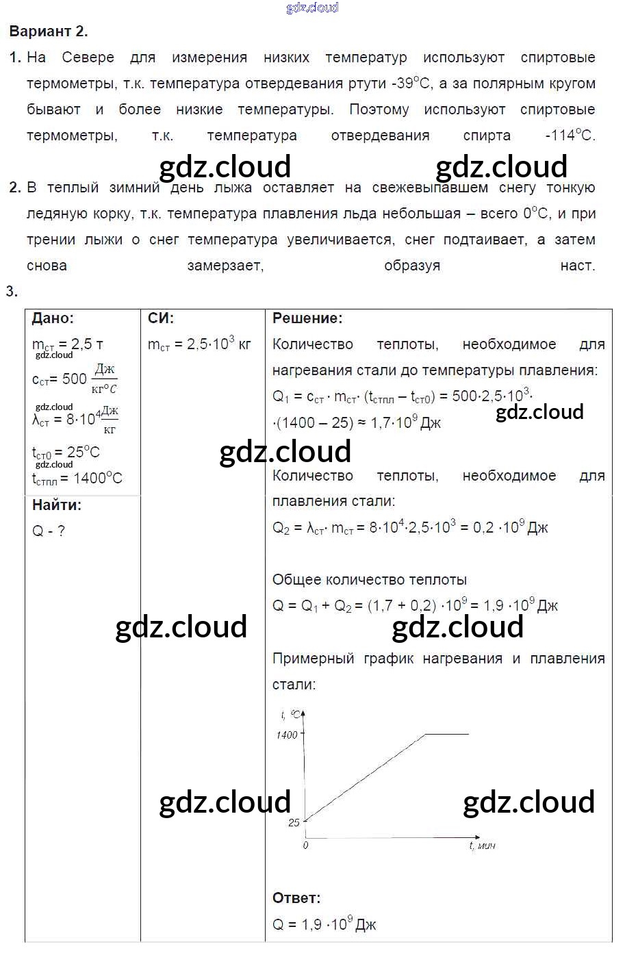 Ответ на задание 2 Дидактические материалы Физика за 8 (восьмой) класс Марон Вертикаль 2016