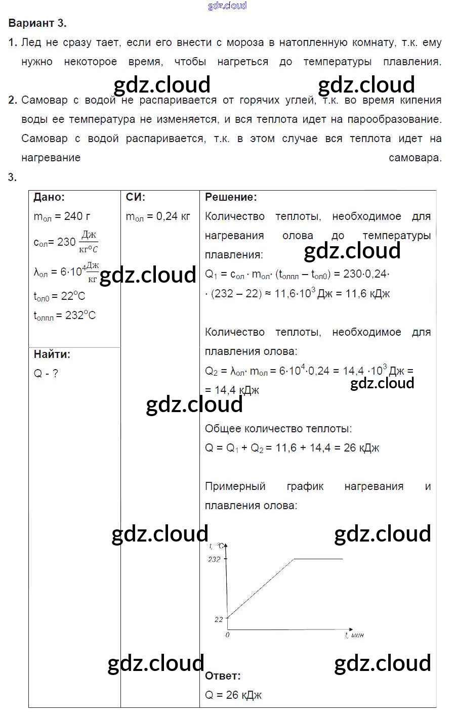 СР №4. Плавление и отвердение. Варианты Ответы к самостоятельным работам по Физике 8 класс Дидактические материалы Марон Вертикаль Дрофа