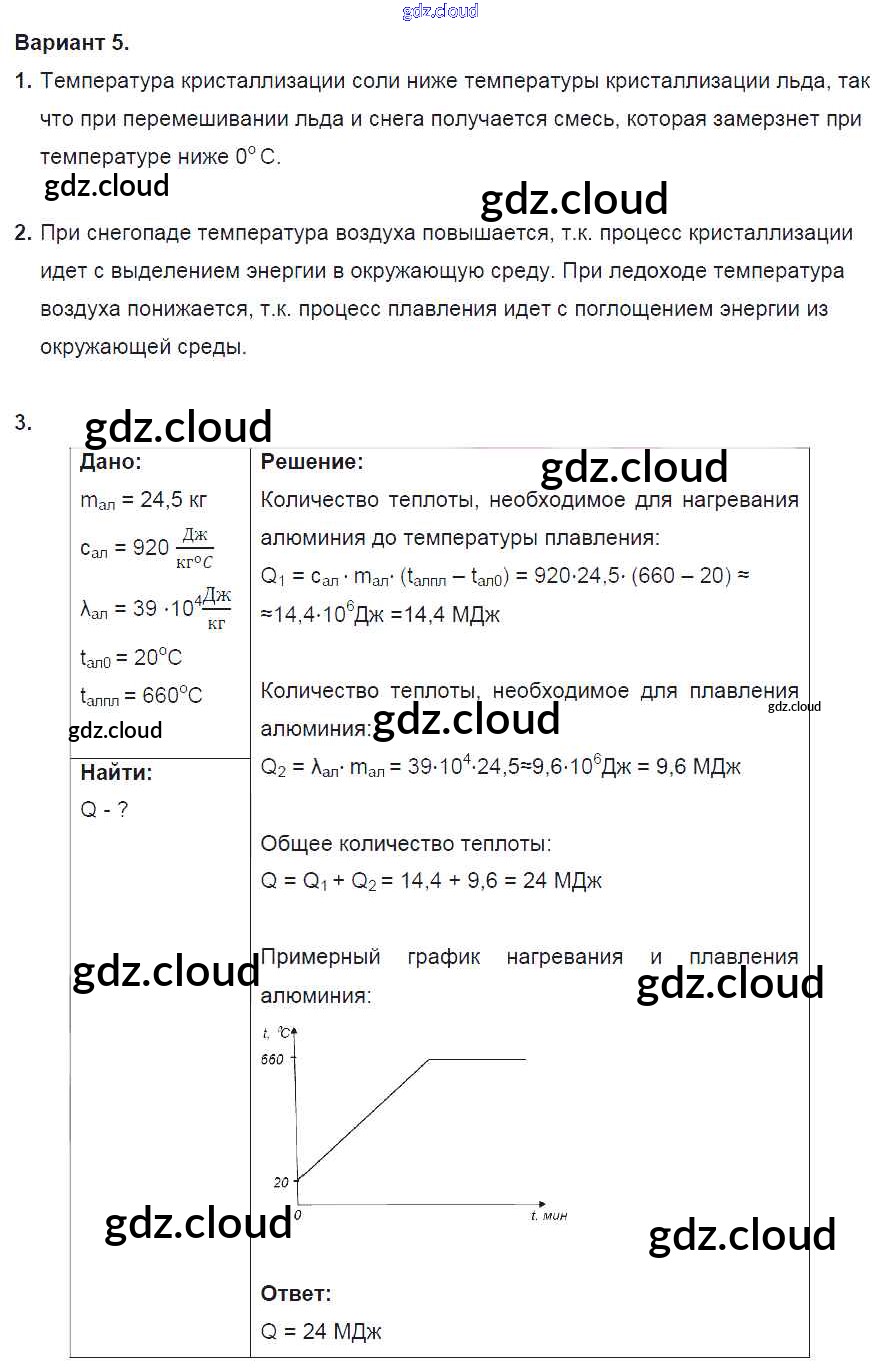 СР №4. Плавление и отвердение. Варианты Ответы к самостоятельным работам по Физике 8 класс Дидактические материалы Марон Вертикаль Дрофа