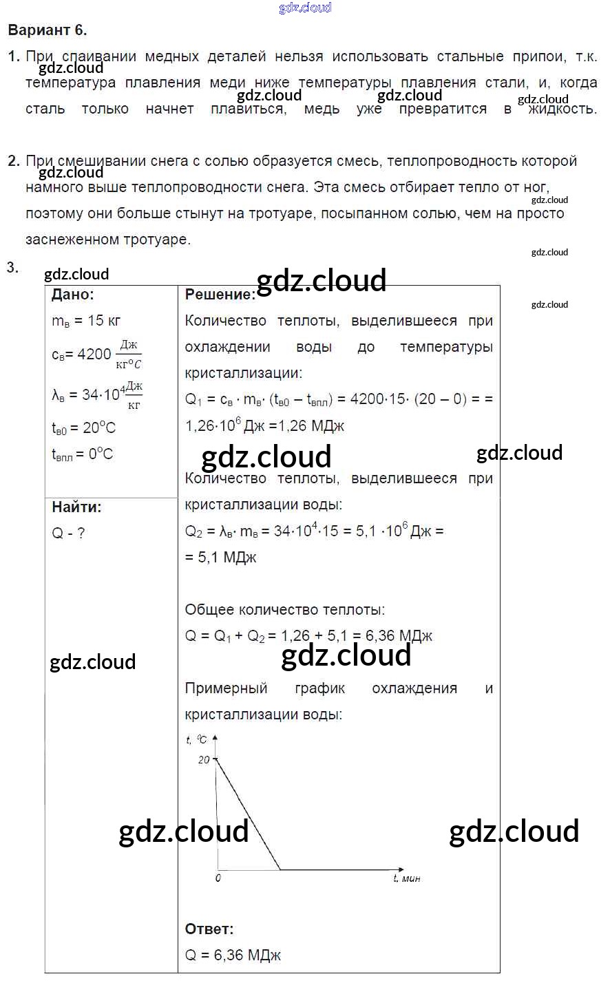 СР №4. Плавление и отвердение. Варианты Ответы к самостоятельным работам по Физике 8 класс Дидактические материалы Марон Вертикаль Дрофа