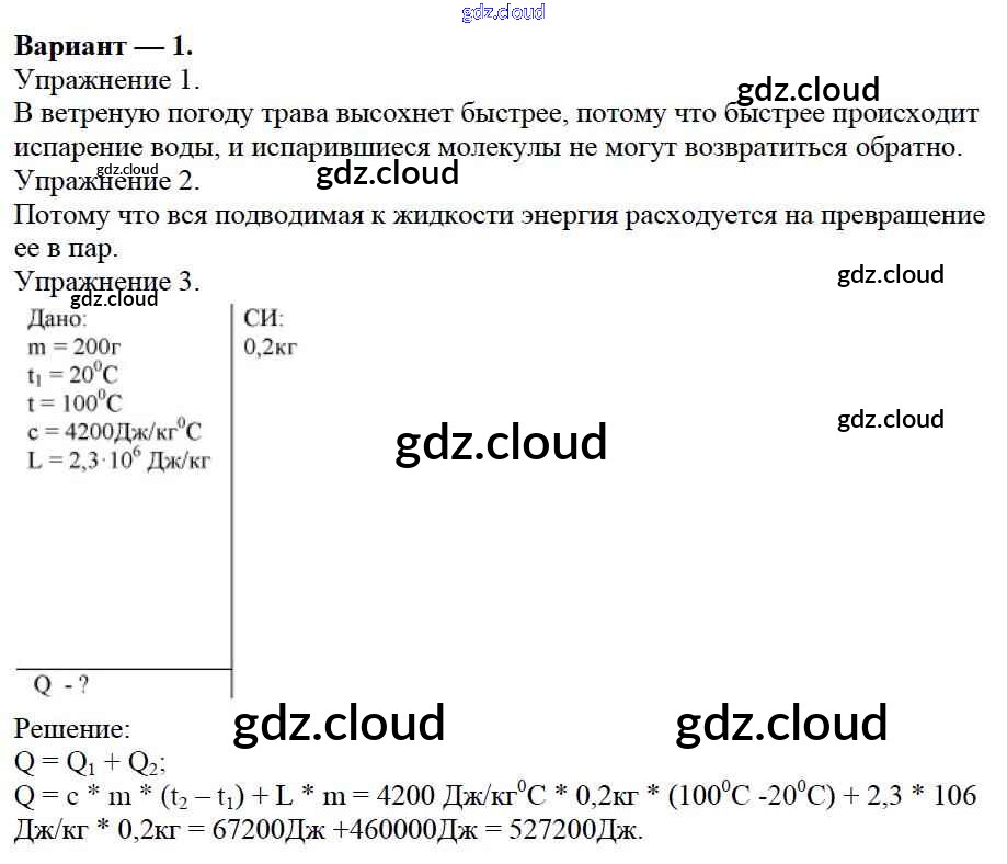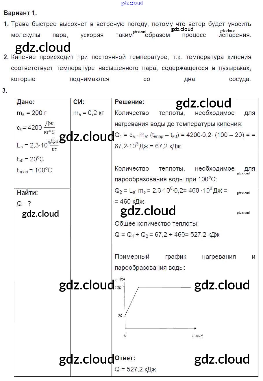 СР №5. Испарение и конденсация. Варианты Ответы к самостоятельным работам по Физике 8 класс Дидактические материалы Марон Вертикаль Дрофа