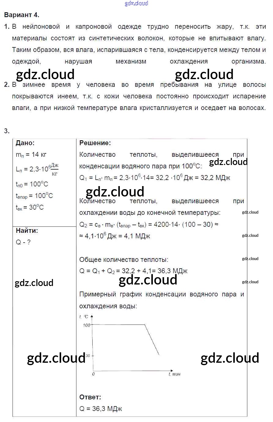 СР №5. Испарение и конденсация. Варианты Ответы к самостоятельным работам по Физике 8 класс Дидактические материалы Марон Вертикаль Дрофа