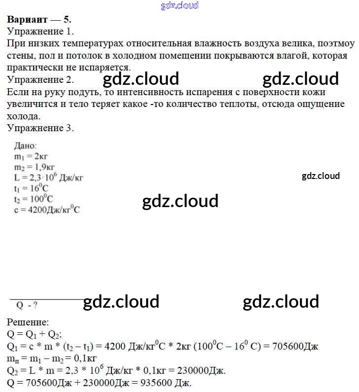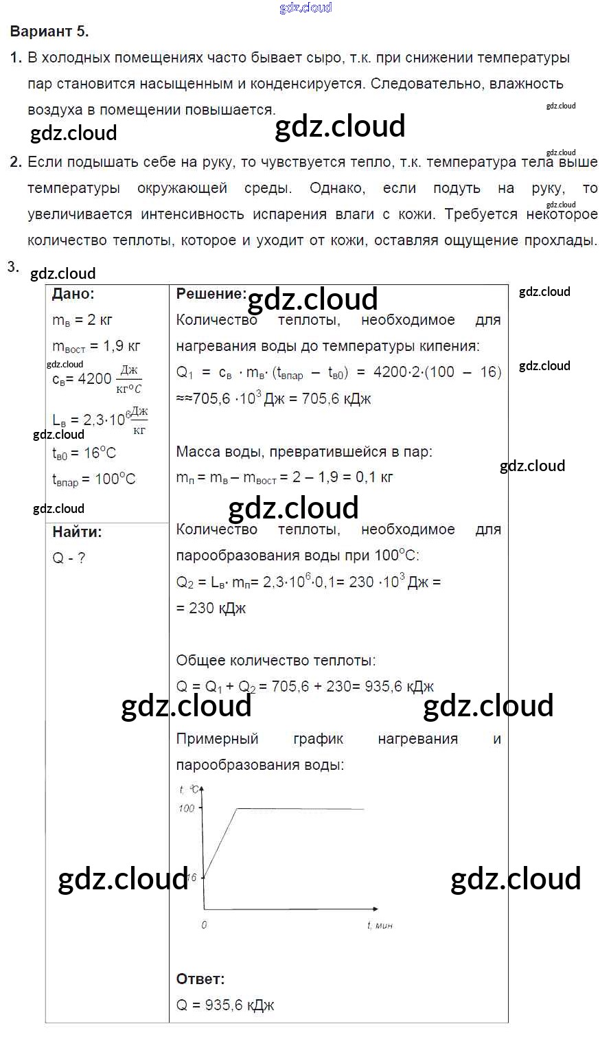 СР №5. Испарение и конденсация. Варианты Ответы к самостоятельным работам по Физике 8 класс Дидактические материалы Марон Вертикаль Дрофа