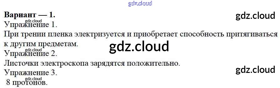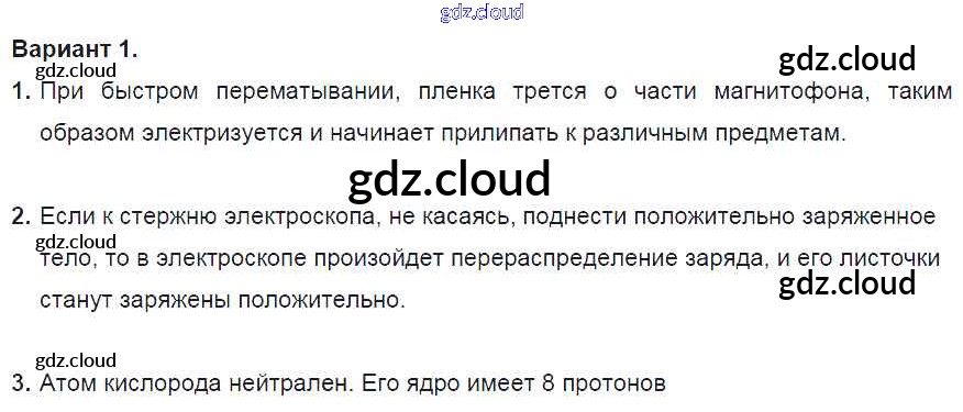 СР №6. Электризация тел. Электрическое поле. Строение атома. Варианты Ответы к самостоятельным работам по Физике 8 класс Дидактические материалы Марон Вертикаль Дрофа