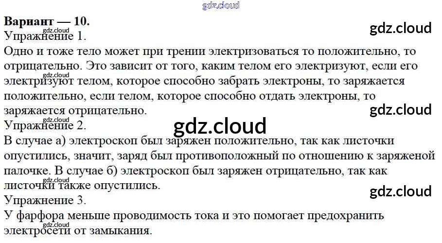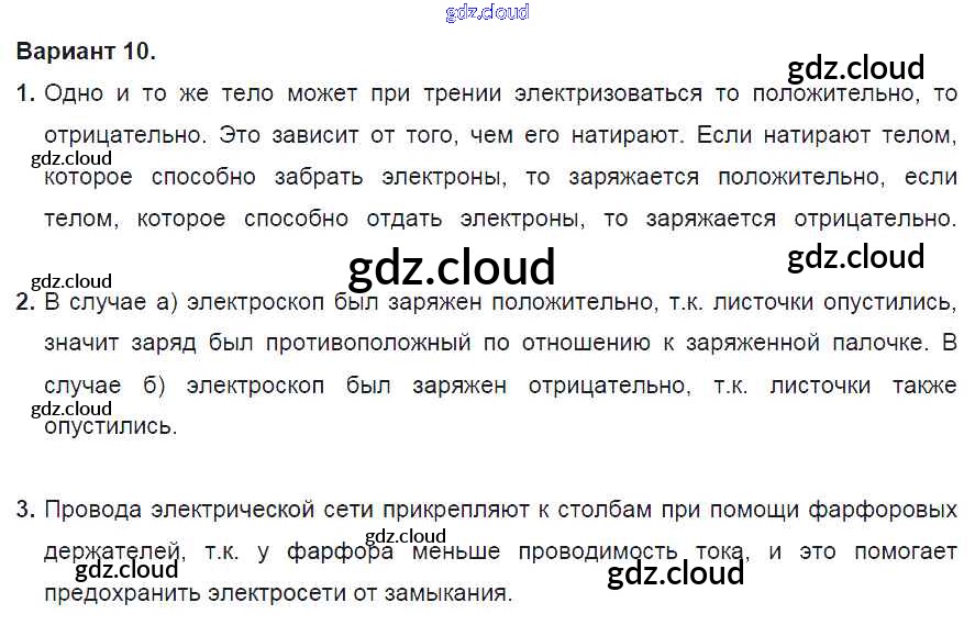 СР №6. Электризация тел. Электрическое поле. Строение атома. Варианты Ответы к самостоятельным работам по Физике 8 класс Дидактические материалы Марон Вертикаль Дрофа