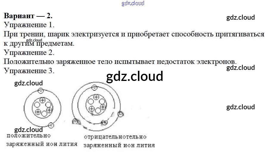 СР №6. Электризация тел. Электрическое поле. Строение атома. Варианты Ответы к самостоятельным работам по Физике 8 класс Дидактические материалы Марон Вертикаль Дрофа