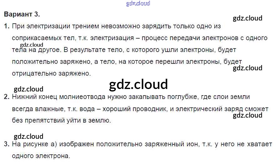 СР №6. Электризация тел. Электрическое поле. Строение атома. Варианты Ответы к самостоятельным работам по Физике 8 класс Дидактические материалы Марон Вертикаль Дрофа
