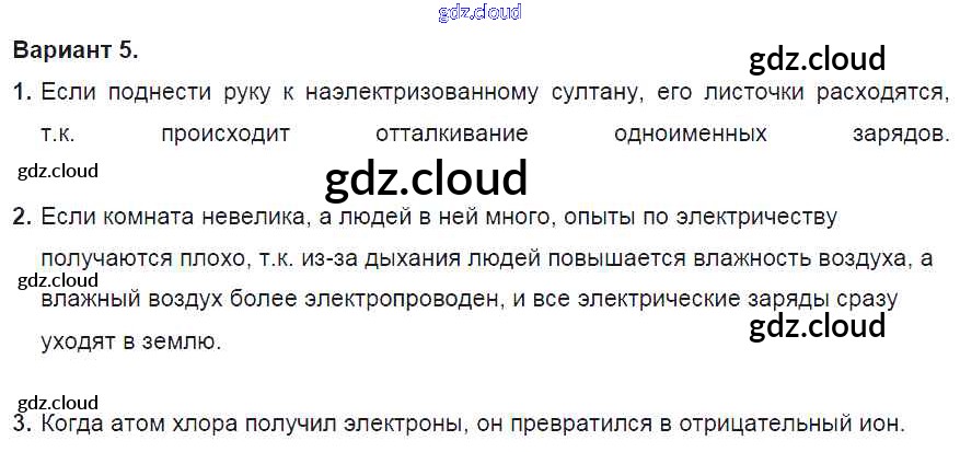 СР №6. Электризация тел. Электрическое поле. Строение атома. Варианты Ответы к самостоятельным работам по Физике 8 класс Дидактические материалы Марон Вертикаль Дрофа