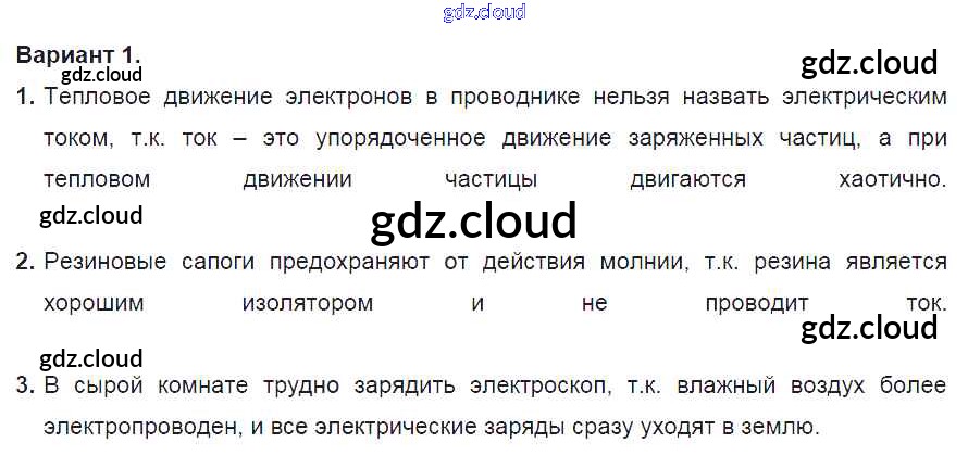 СР №7. Электрический ток. Варианты Ответы к самостоятельным работам по Физике 8 класс Дидактические материалы Марон Вертикаль Дрофа