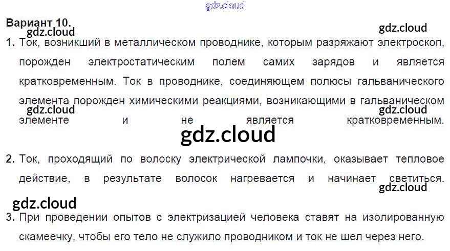 СР №7. Электрический ток. Варианты Ответы к самостоятельным работам по Физике 8 класс Дидактические материалы Марон Вертикаль Дрофа