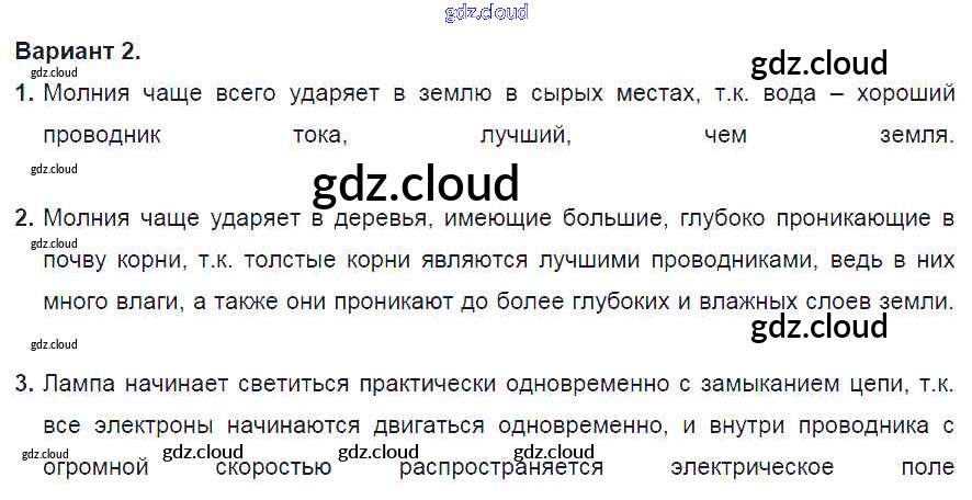СР №7. Электрический ток. Варианты Ответы к самостоятельным работам по Физике 8 класс Дидактические материалы Марон Вертикаль Дрофа
