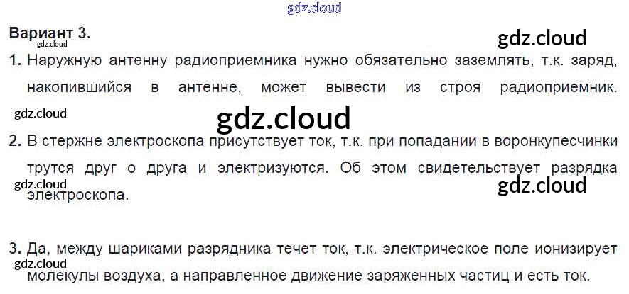 СР №7. Электрический ток. Варианты Ответы к самостоятельным работам по Физике 8 класс Дидактические материалы Марон Вертикаль Дрофа