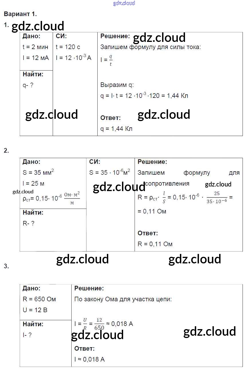 СР №8. Сила тока. Напряжение. Закон Ома для участка цепи Варианты Ответы к самостоятельным работам по Физике 8 класс Дидактические материалы Марон Вертикаль Дрофа
