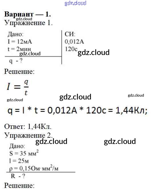 Ответ на задание 1 Дидактические материалы Физика за 8 (восьмой) класс Марон Вертикаль 2016