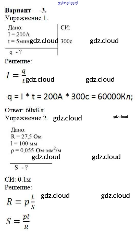 СР №8. Сила тока. Напряжение. Закон Ома для участка цепи Варианты Ответы к самостоятельным работам по Физике 8 класс Дидактические материалы Марон Вертикаль Дрофа