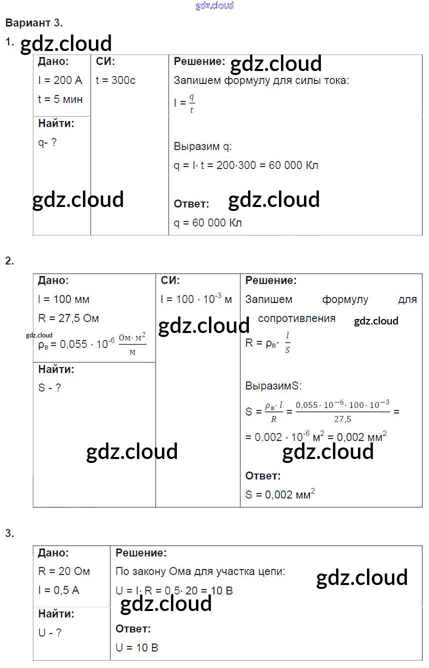 Ответ на задание 3 Дидактические материалы Физика за 8 (восьмой) класс Марон Вертикаль 2016