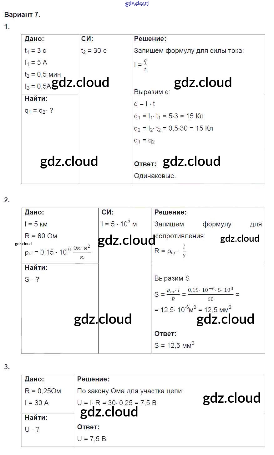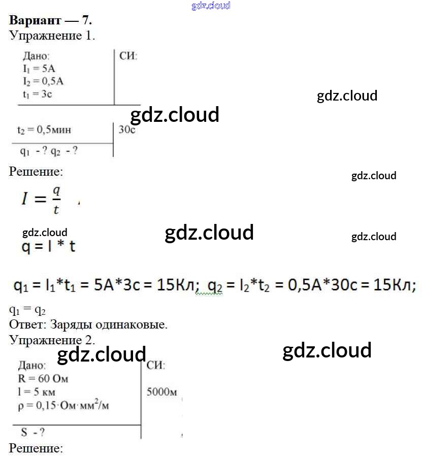 Ответ на задание 7 Дидактические материалы Физика за 8 (восьмой) класс Марон Вертикаль 2016