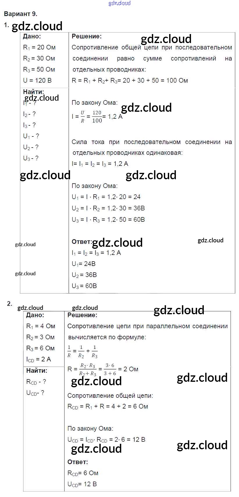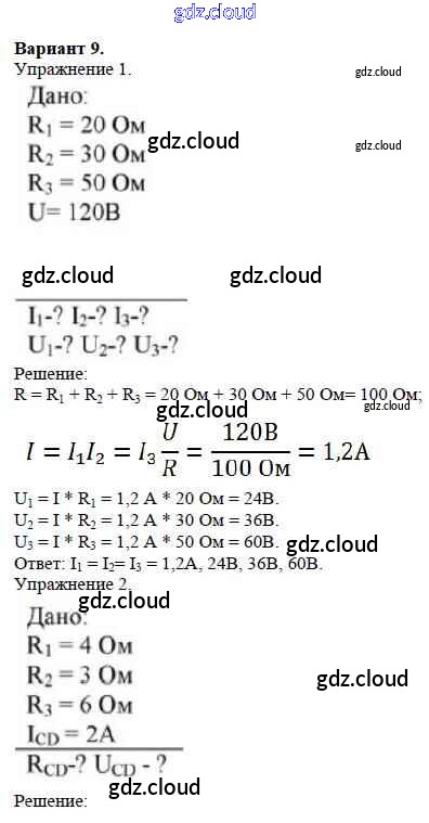 СР №9. Соединение проводников. Варианты Ответы к самостоятельным работам по Физике 8 класс Дидактические материалы Марон Вертикаль Дрофа
