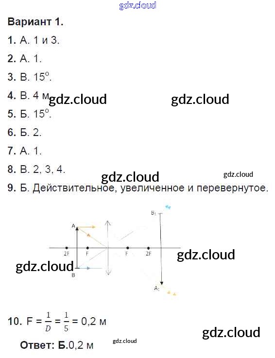 Тест №10. Оптические явления. Варианты Ответы к тестам для самоконтроля по Физике 8 класс Дидактические материалы Марон Вертикаль Дрофа