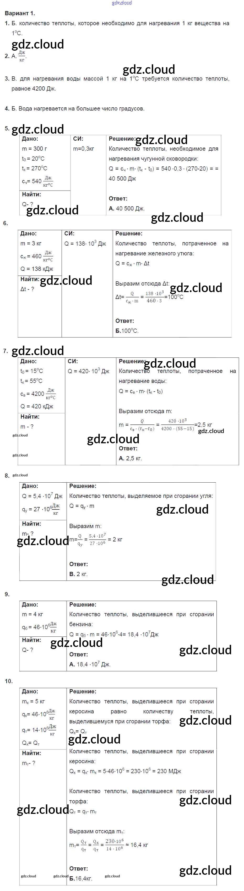 Тест №2. Количество теплоты. Энергия топлива. Варианты Ответы к тестам для самоконтроля по Физике 8 класс Дидактические материалы Марон Вертикаль Дрофа