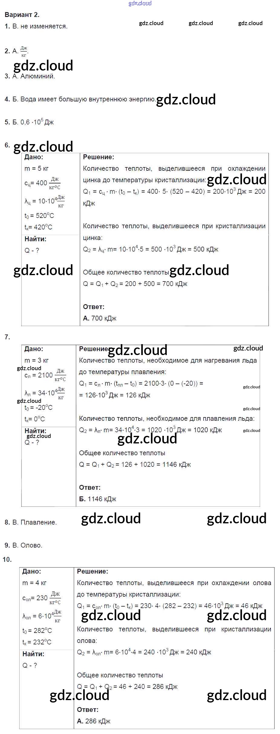 Тест №3. Плавление и отвердевание. Варианты Ответы к тестам для самоконтроля по Физике 8 класс Дидактические материалы Марон Вертикаль Дрофа