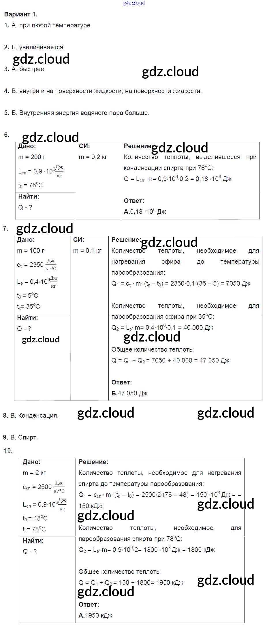 Тест №4. Испарение и конденсация. Варианты Ответы к тестам для самоконтроля по Физике 8 класс Дидактические материалы Марон Вертикаль Дрофа