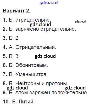 Тест №5. Электризация тел. Электрическое поле. Строение атома. Варианты Ответы к тестам для самоконтроля по Физике 8 класс Дидактические материалы Марон Вертикаль Дрофа