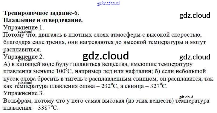 Ответ на задание 6. Плавление и отвердевание Дидактические материалы Физика за 8 (восьмой) класс Марон Вертикаль 2016