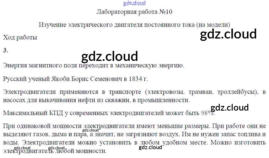 Ответ на задание ЛР №10. Изучение электрического двигателя постоянного тока Тетрадь для лабораторных работ Физика за 8 (восьмой) класс Минькова, Иванова УМК 2014