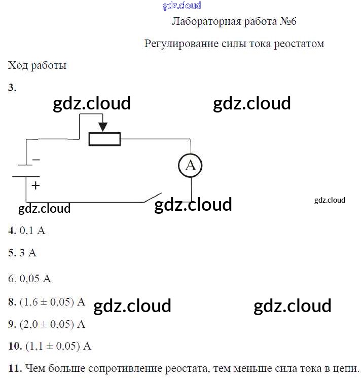 Ответ на задание ЛР №6. Регулирование силы тока реостатом Тетрадь для лабораторных работ Физика за 8 (восьмой) класс Минькова, Иванова УМК 2014
