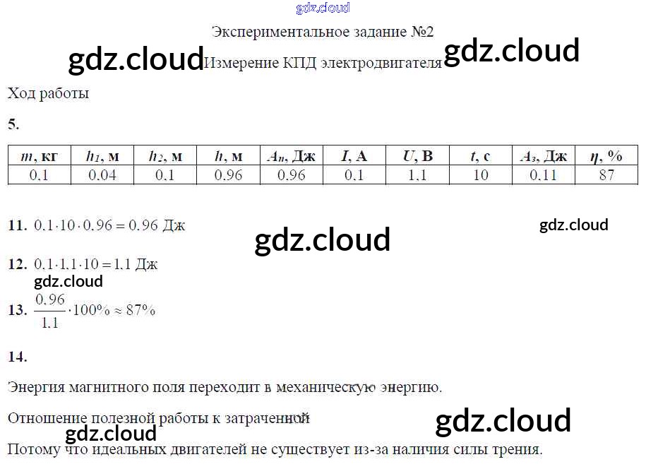 Ответ на задание ЭЗ №2. Измерение КПД электродвигателя Тетрадь для лабораторных работ Физика за 8 (восьмой) класс Минькова, Иванова УМК 2014
