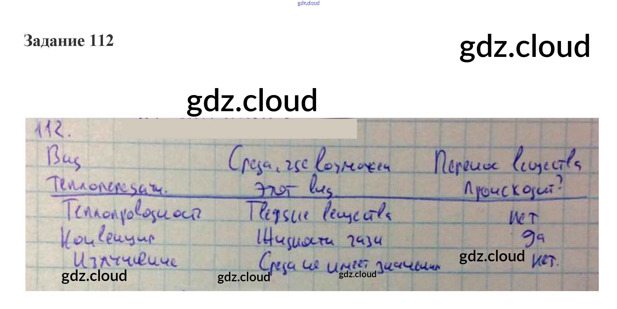 Ответ на задание 112 Рабочая тетрадь Физика за 8 (восьмой) класс Пурышева, Важеевская 2015 ФГОС онлайн и без номера телефона.