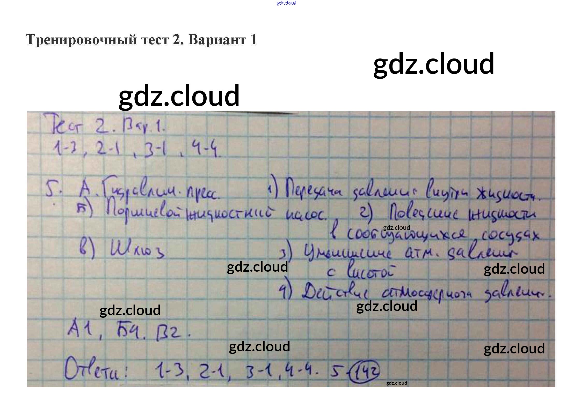 Ответы к тестам по Физике 8 класс Рабочая тетрадь Пурышева Дрофа