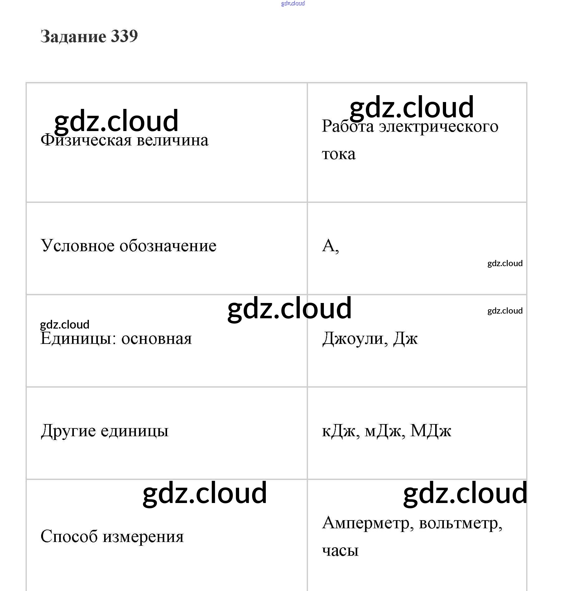 Ответ на задание 339 Рабочая тетрадь Физика за 8 (восьмой) класс Пурышева, Важеевская 2015 ФГОС онлайн и без номера телефона.