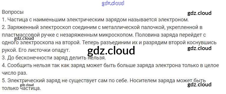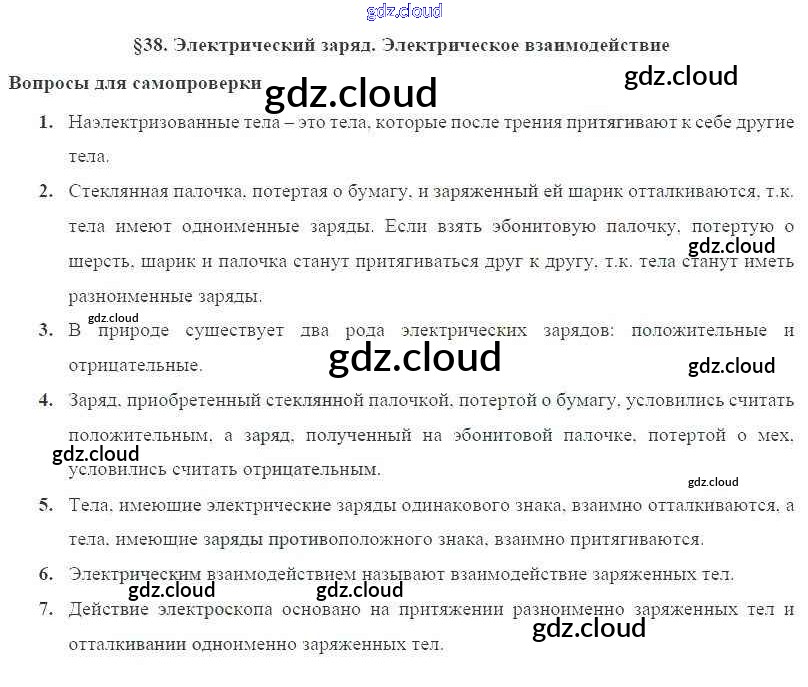 Ответ на задание § 38. Электрический заряд. Электрическое взаимодействие Учебник Физика за 8 (восьмой) класс Пурышева, Важеевская Вертикаль 2017