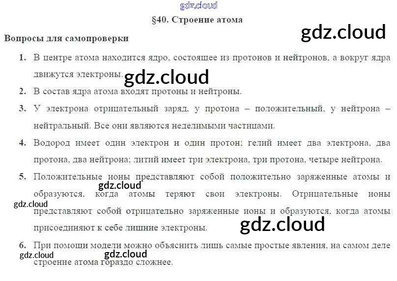 Ответ на задание § 40. Строение атома Учебник Физика за 8 (восьмой) класс Пурышева, Важеевская Вертикаль 2017