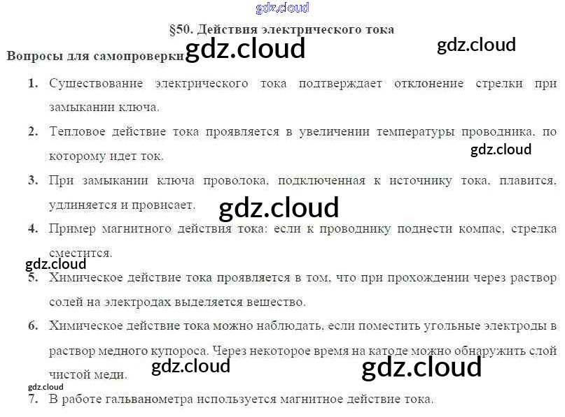 Ответ на задание § 50. Действия электрического тока Учебник Физика за 8 (восьмой) класс Пурышева, Важеевская Вертикаль 2017