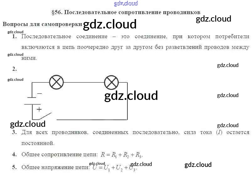 Ответ на задание § 56. Последовательное сопротивление проводников Учебник Физика за 8 (восьмой) класс Пурышева, Важеевская Вертикаль 2017