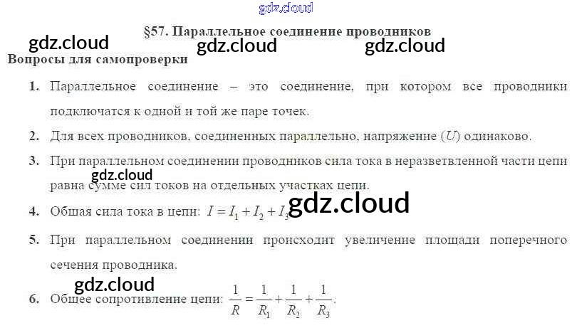 Ответ на задание § 57. Параллельное соединение проводников Учебник Физика за 8 (восьмой) класс Пурышева, Важеевская Вертикаль 2017