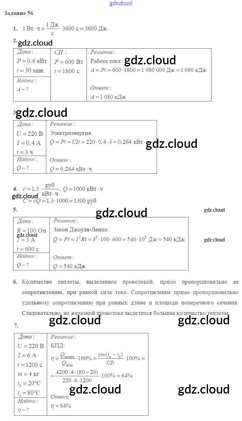 Ответ на задание № 56 Учебник Физика за 8 (восьмой) класс Пурышева, Важеевская Вертикаль 2017 ФГОС онлайн и без номера телефона.