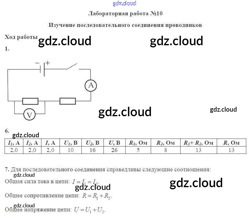 Ответ на задание ЛР №10. Изучение последовательного соединения проводников Учебник Физика за 8 (восьмой) класс Пурышева, Важеевская Вертикаль 2017