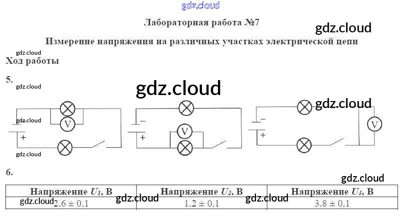 Ответ на задание ЛР №7. Измерение напряжения на различных участках электрической цепи Учебник Физика за 8 (восьмой) класс Пурышева, Важеевская Вертикаль 2017
