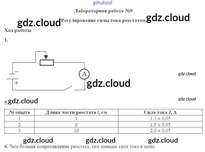 Ответ на задание ЛР №9. Регулирование силы тока реостатом Учебник Физика за 8 (восьмой) класс Пурышева, Важеевская Вертикаль 2017
