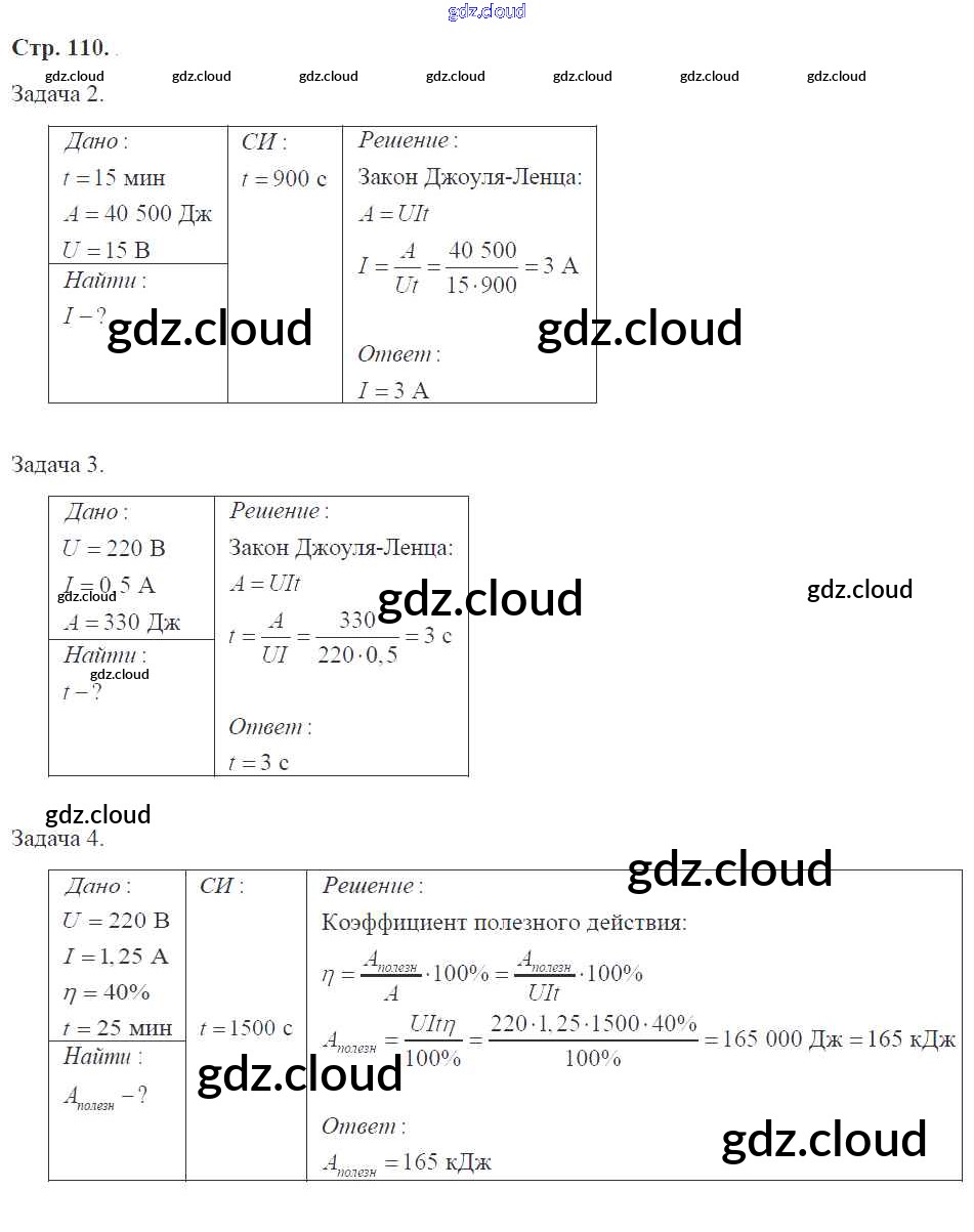 Ответ на задание 110 Рабочая тетрадь Физика за 8 (восьмой) класс Перышкин УМК 2017 ФГОС онлайн и без номера телефона.
