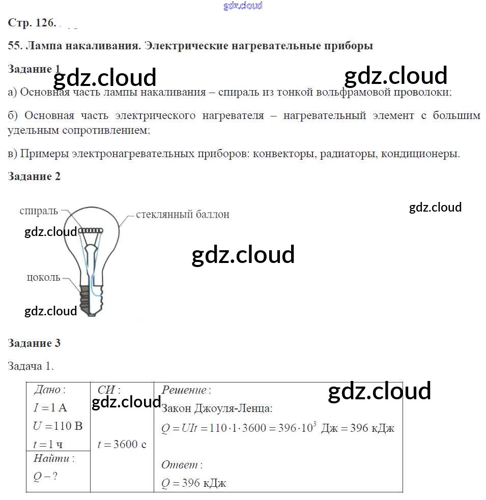Ответ на задание 126 Рабочая тетрадь Физика за 8 (восьмой) класс Перышкин УМК 2017 ФГОС онлайн и без номера телефона.