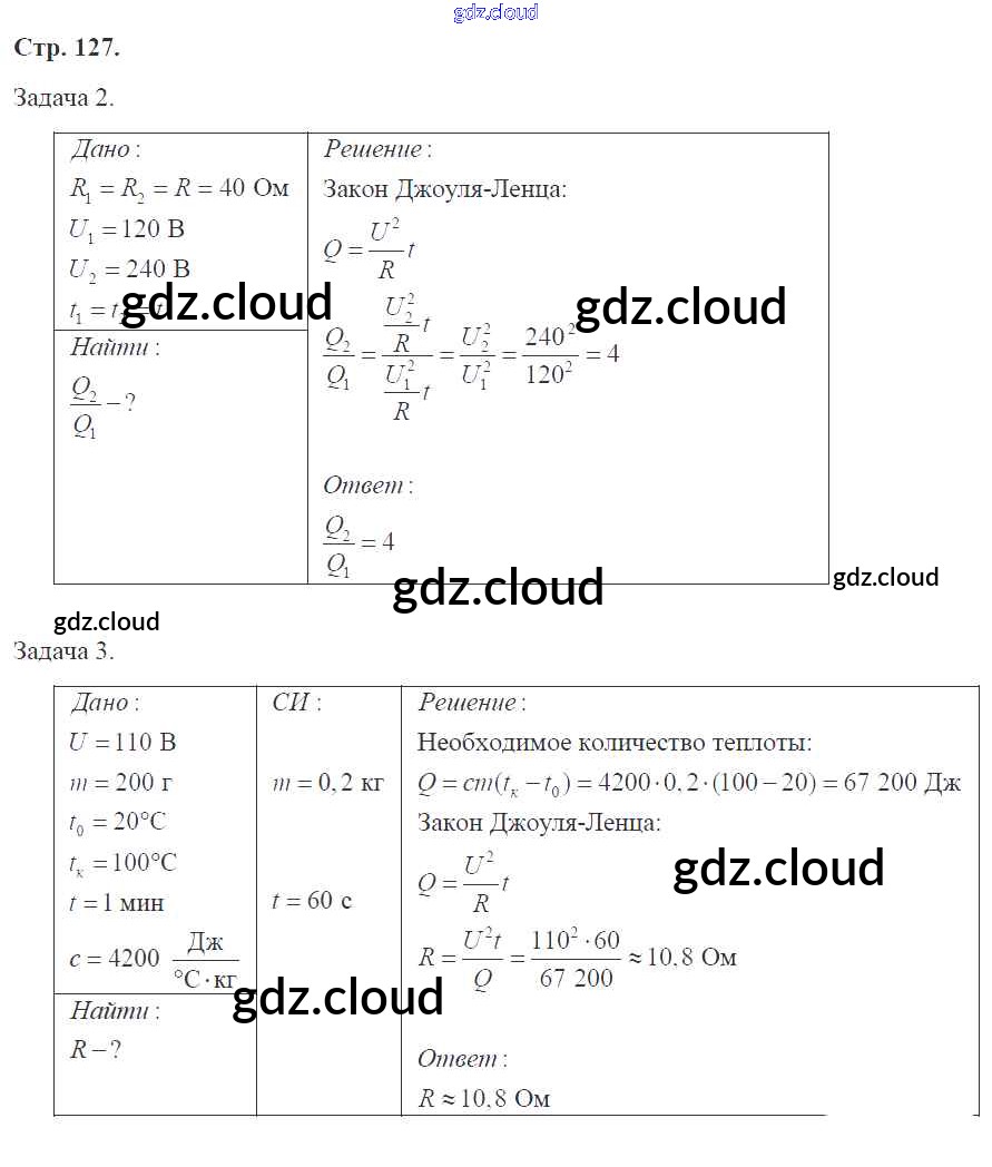 Ответ на задание 127 Рабочая тетрадь Физика за 8 (восьмой) класс Перышкин УМК 2017 ФГОС онлайн и без номера телефона.