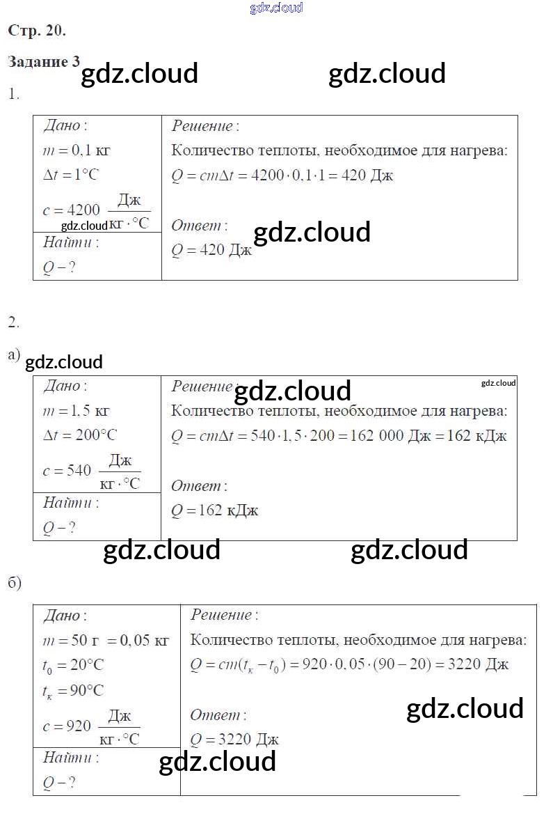 Ответ на задание 20 Рабочая тетрадь Физика за 8 (восьмой) класс Перышкин УМК 2017 ФГОС онлайн и без номера телефона.