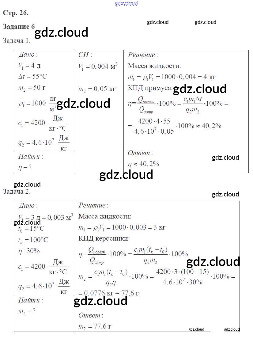 Ответ на задание 26 Рабочая тетрадь Физика за 8 (восьмой) класс Перышкин УМК 2017 ФГОС онлайн и без номера телефона.